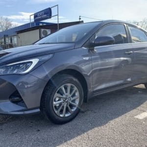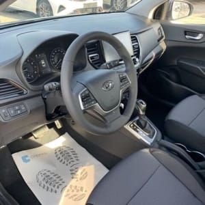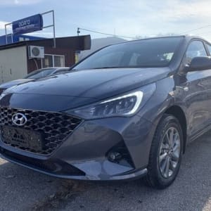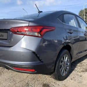 Новый автомобиль без пробега. Хундай Солярис. Комплектация элеганс. Цвет серый металлик. Автосалон.