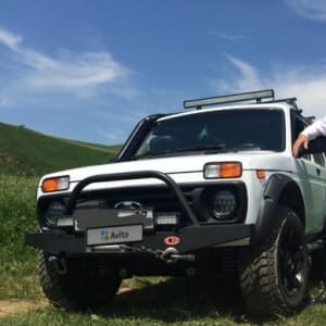 Двигатель 1,8(100л.с), лифтован, амортизаторы Каябо. Защита днище. Блокировка заднего моста, вал рейсинг. Самоблок оригинал. Белкардан. Передний мост отвязан.Сделана полная обесшумка в 2 слоя. Кнопка:старт,стоп, сигнализация-имобилвейзер. Музыка вся пионер. Бампера OJ-оригинал.