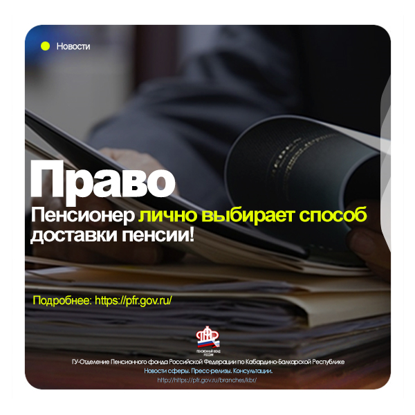 Пенсионер лично выбирает способ доставки пенсии!