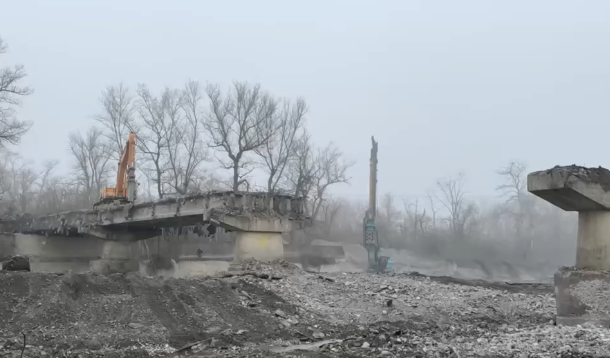 В текущий момент специалисты продолжают работы по демонтажу пролетных строений существующего моста, бурят сваи берегоукрепления, обвызывают каркасы для берегоукрепительных свай и разбирают ригельные консоли старой конструкции.