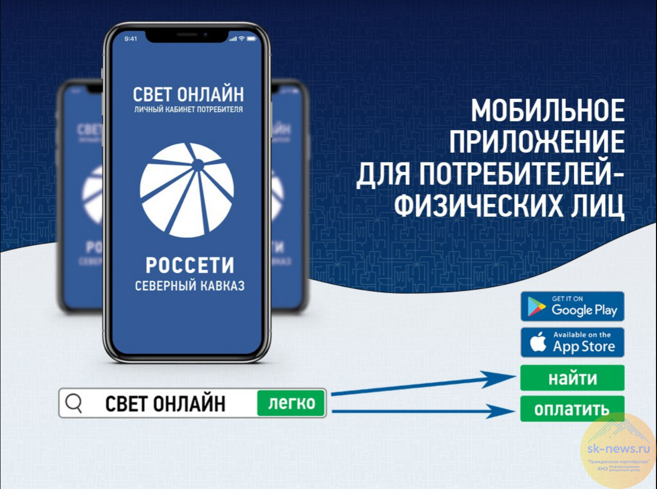 Кроме того, «Россети Северный Кавказ» запустили мобильное приложение «Свет онлайн». С помощью удобного сервиса для смартфона можно заплатить за потребленную электроэнергию, проверить историю показаний и платежей, передать данные прибора учета.