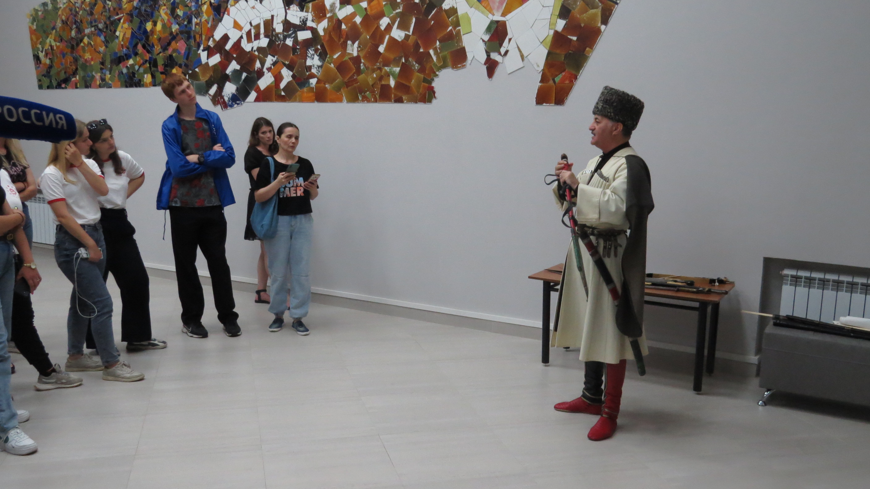 Затем директор Национального музея КБР, известный знаток национального оружия, ознакомил членов движения «Дороги славы - наша история» со старинной кабардинской шашкой и дал мастер-класс по обращению с холодным оружием.