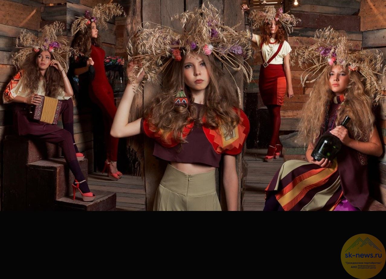 Помимо этого, в костюмах дизайнера СКФУ прослеживаются элементы народной вышивки, многообразие фактур и аппликаций, многослойность в одежде. Детали одежды, такие как рукава, различные виды складок повторяют строение гармони. Аксессуарами служат головные уборы, выполненные из натуральных растений: рябины и пшеницы. В завершении представляемого «ансамбля», такой необычный и в то же время модный аксессуар, как сумка в виде гармошки.