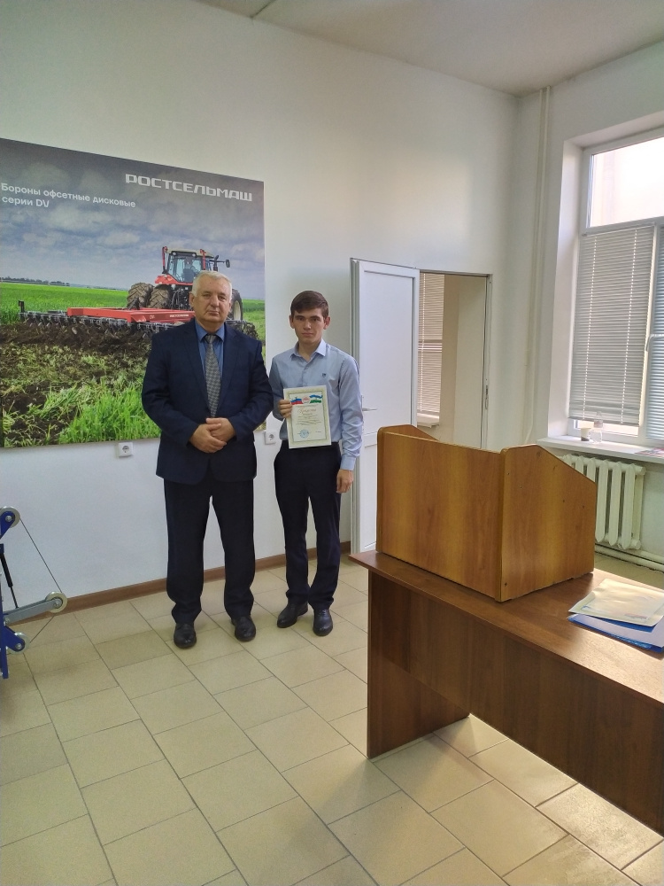 1. За лучшие знания сельскохозяйственной техники, производимой ОАО «Ростсельмаш», отмечен студент 4 курса Чмыхов Викто.