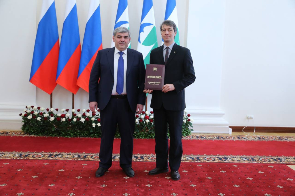 Глава КБР Казбек Коков поздравил учителя физики и астрономии Лицея №2 города Нальчика, кандидата физических наук,