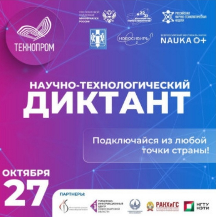 В рамках Форума 27 октября 2023 года в 11:00 по московскому времени в онлайн-формате пройдет первый всероссийский Научно-технологический диктант с целью привлечения внимания к вопросам научно-технологического развития.