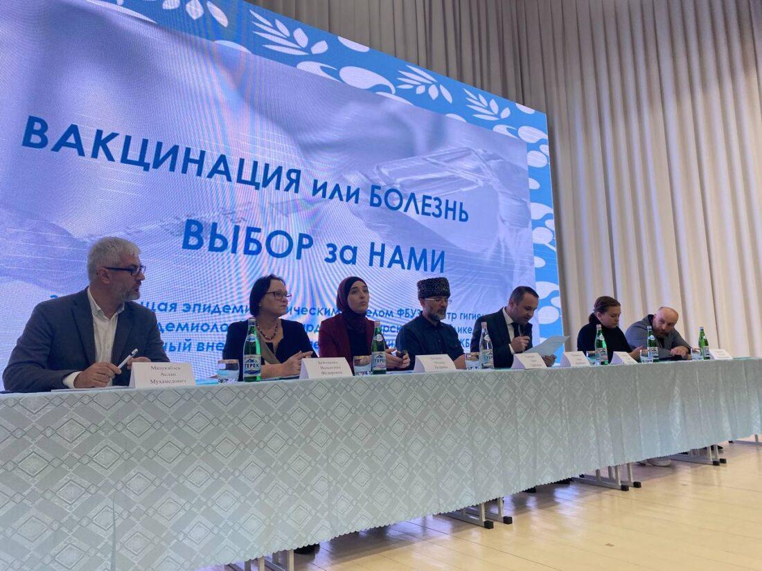 С докладом о важности вакцинопрофилактики выступили начальник эпидемиологического отдела ФБУЗ «Центр гигиены и эпидемиологии в КБР Медина Петрова, врач-иммунолог Валентина Бейтокова, врач-эпидемиолог Евгения Сухарева, заместитель председателя Духовного управления мусульман КБР Алим Сижажев и член родительского комитета при Министерстве просвещения КБР Аслан Мазукабзев.