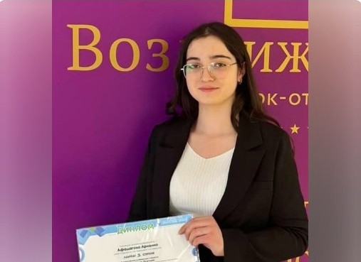 Афашагова Арианна ученица 10 класса МОУ «СОШ №3 им.Т.М.Катанчиева» с.п.Атажукино заняла 2 место в финале Всероссийского конкурса исследовательских и проектных работ учащихся "Юность, наука, культура",
