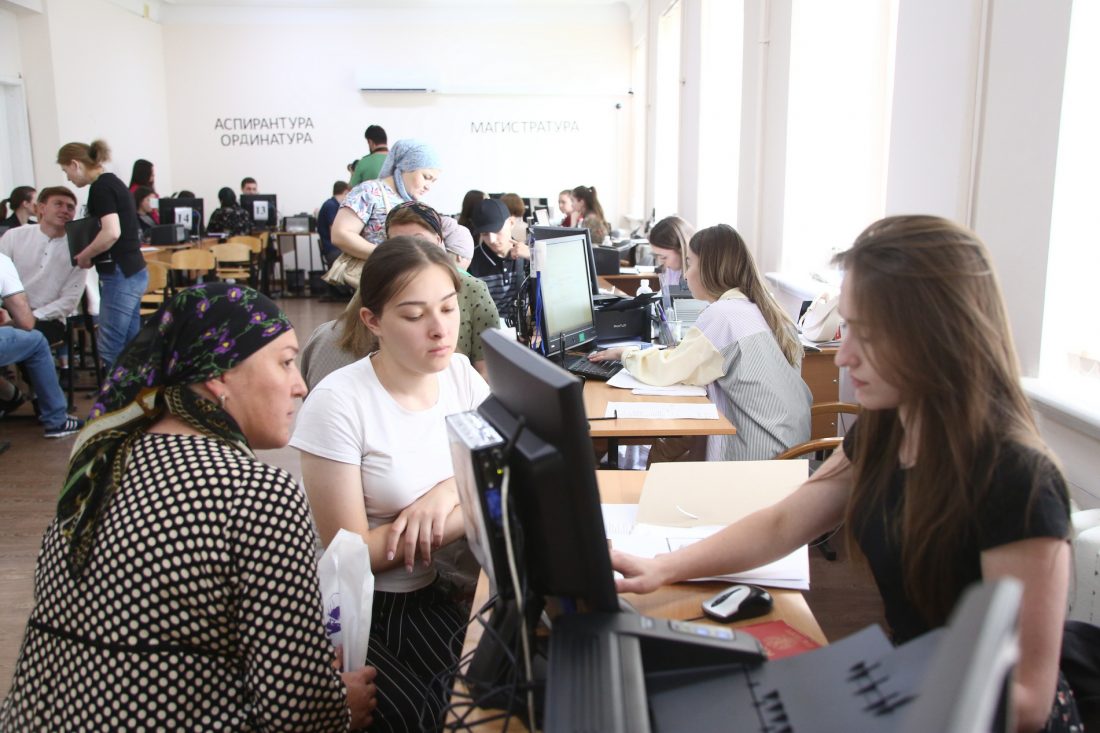 «Отмечу, что буквально неделю назад мы получили 115 дополнительных мест по программам магистратуры по приоритетным направлениям научно-технологического развития РФ: инженерно-техническим и педагогическим направлениям подготовки, а именно «Информатика и вычислительная техника», «Прикладная математика и информатика», «Физика» и т.д.». «Прием документов начался традиционно с 20 июня. В первую неделю, как правило, к нам приходят либо выпускники средних общеобразовательных учреждений, не поступившие в прошлом году, но у них есть результаты ЕГЭ, либо выпускники 9-х классов, которые хотят поступить в колледжи КБГУ», - отметил Т. Табишев.