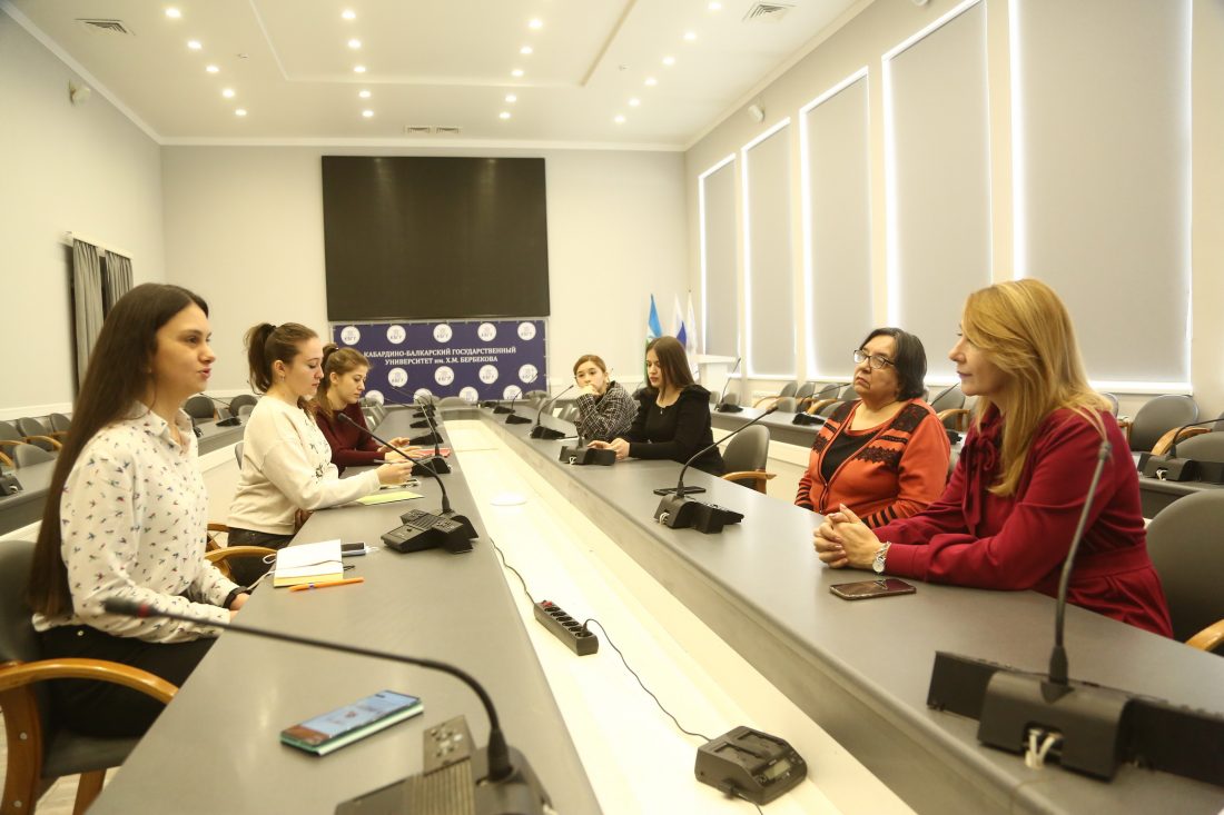 11 января в Кабардино-Балкарском государственном университете им. Х. М. Бербекова в рамках реализации программы «Приоритет 2030» прошли встречи и.о. проректора по научно-исследовательской работе доктора химических наук, профессора Светланы Хашировой со студенческим научным обществом института педагогики, психологии и физкультурно-спортивного образования «Уникум» и научным объединением студентов педагогического колледжа «Спектр», на которых был обсужден ряд вопросов по разработке научных проектов.