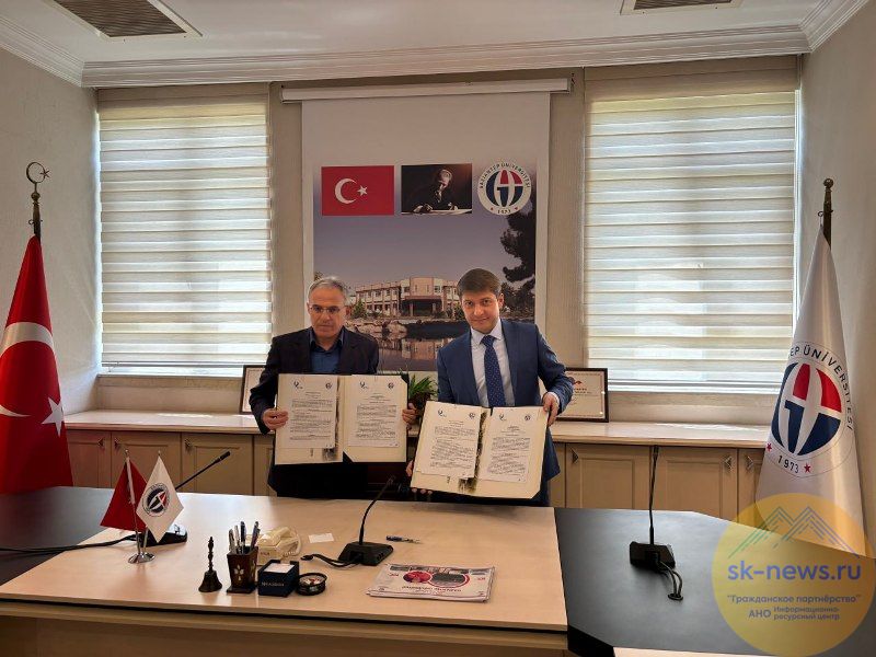 Ректор СКФУ Дмитрий Беспалов с ректором Университета Газиантеп Арифом Озайдином подписал меморандум и обсудил широкий спектр вопросов, в том числе реализацию научно-исследовательских программ, проектов по созданию и освоению технологий, материалов и образцов высокотехнологичной промышленной продукции; проведение конференций, семинаров, организацию совместных проектов, программ, грантов.