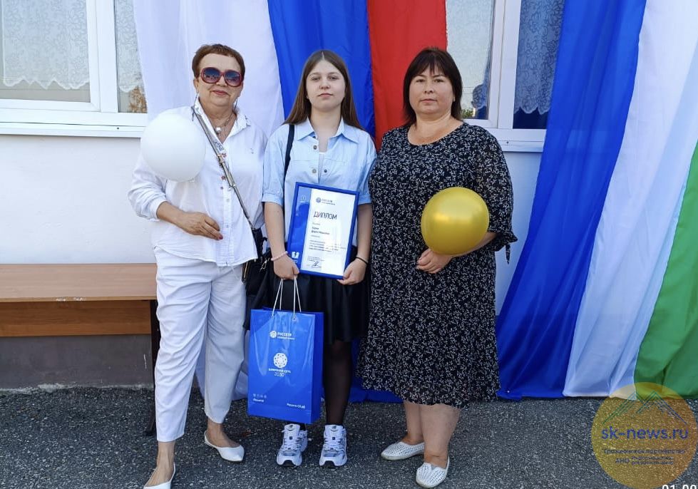 Диплом победителя и ценный приз Дарье вручили энергетики филиала «Россети Северный Кавказ» – «Каббалкэнерго» во время торжественной линейки в средней общеобразовательной школе № 8 станицы Котляревской Майского района.