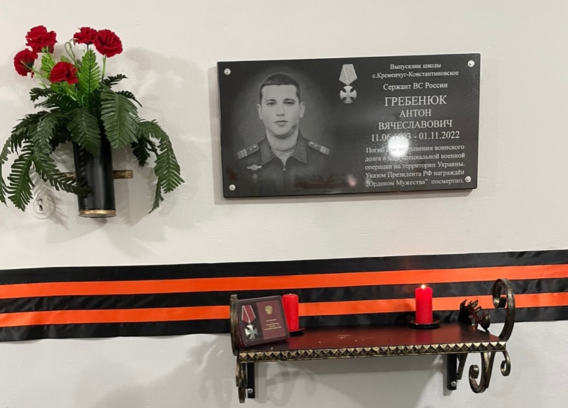Сегодня в школе селения Кременчуг-Константиновское Баксанского района состоялось открытие мемориальной доски выпускнику школы Антону Гребенюку, погибшему при исполнении воинского долга в ходе специальной операции.