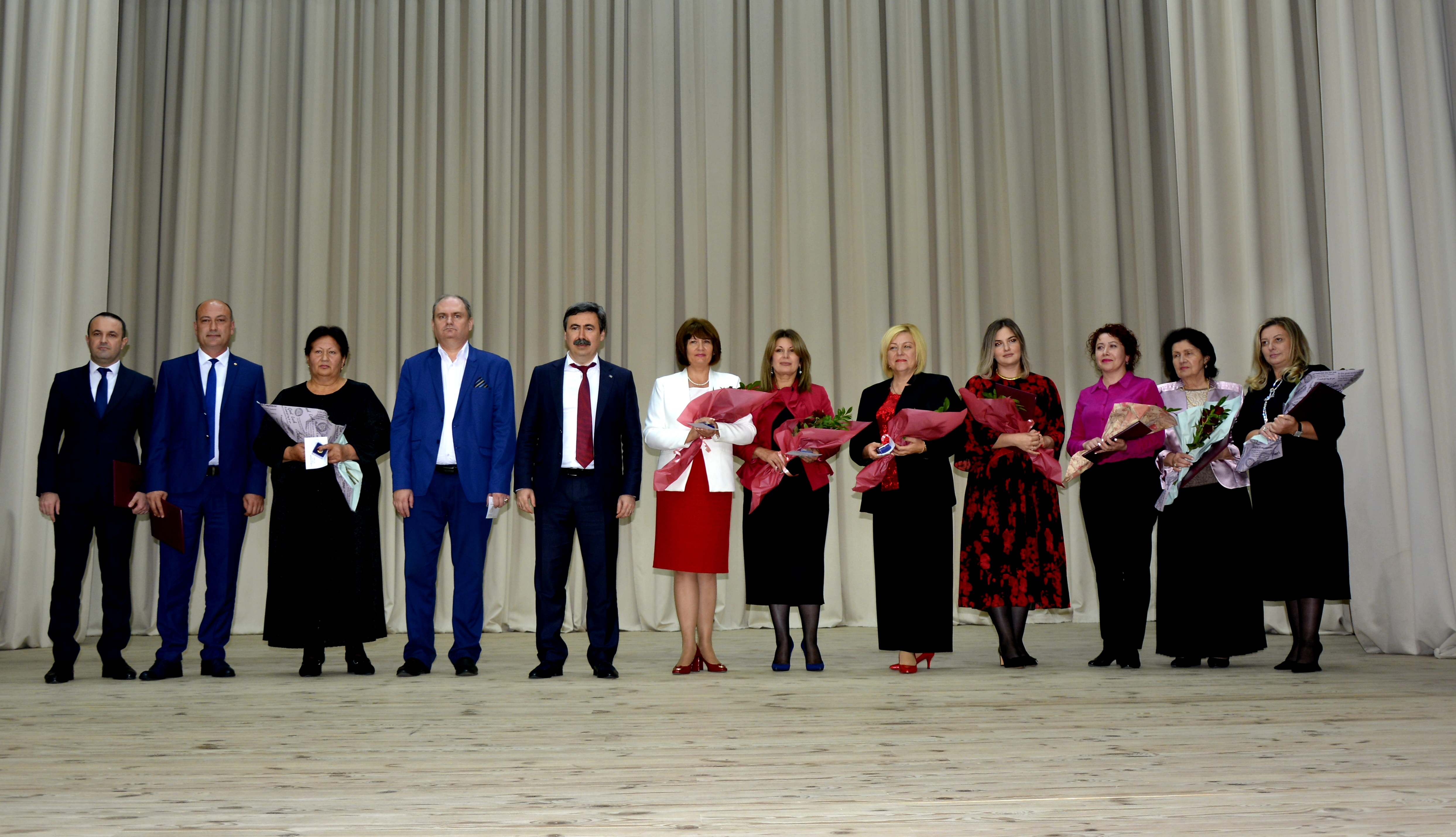 «На учителя возложена тяжелейшая миссия - ответственность за будущее. Мне кажется, важно сегодня говорить о признании ваших заслуг. Я желаю, чтобы учителя гордились своими учениками. Желаю, чтобы ученики возвращались к учителям. И сегодня я также хочу вам пожелать, чтобы в вашей нелегкой работе были и минуты радости», - сказал А. Езаов.