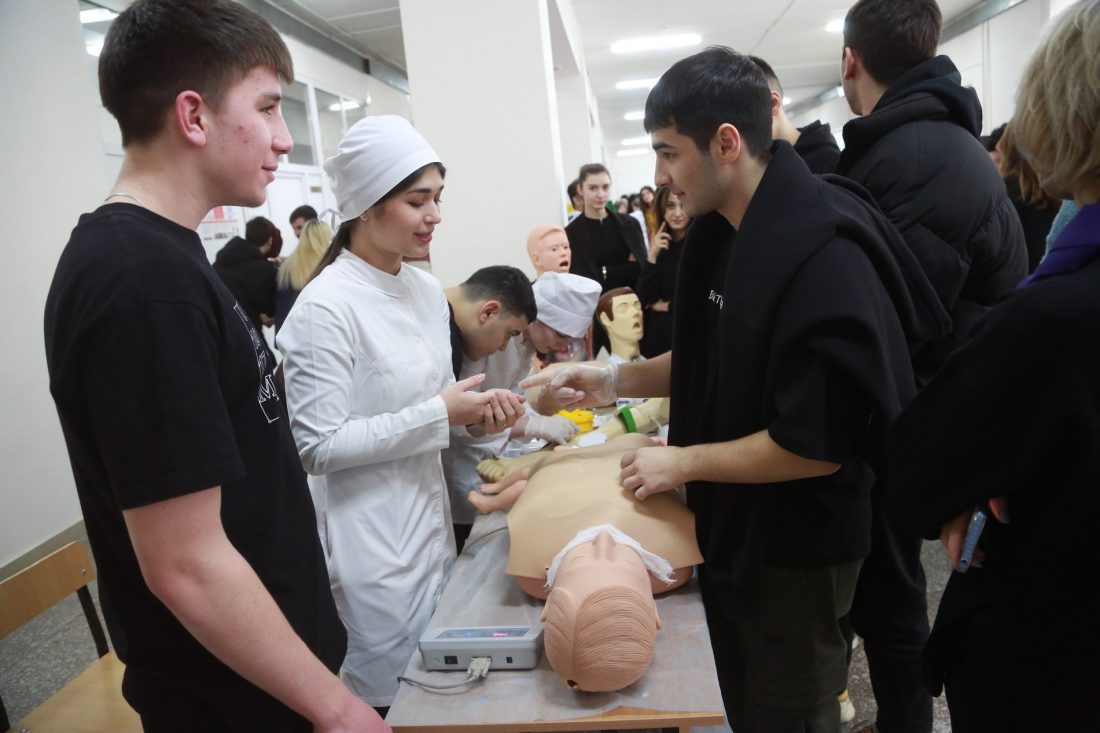 В корпусе института физики и математики студенческие советы структурных подразделений КБГУ развернули интерактивные познавательные площадки. Здесь можно было освоить навыки по оказанию первой медицинской помощи, познакомиться с практическими основами изобразительного искусства, провести химические и физические опыты с использованием специализированных приборов и реактивов.