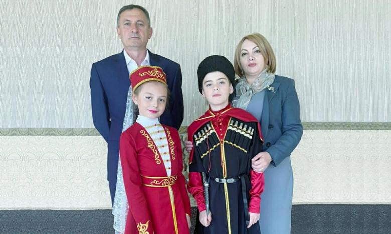 - Главная наша гордость и радость – наши дети, Карина и Кантемир. Когда чего-то добиваются твои дети, это гораздо важнее собственных достижений. Карине 12 лет. В школе она круглая отличница. Всегда активна, ответственна и обязательна. Принимает активное участие в муниципальных и республиканских конкурсах. В 2020 году стала победителем республиканского конкурса «Черкесский мир». В январе этого года - призером республиканского конкурса «Живое слово». В 2022 г., следуя семейной традиции чтить память героев войны, участвовала в районном смотре строя и песни «Салют и май!»