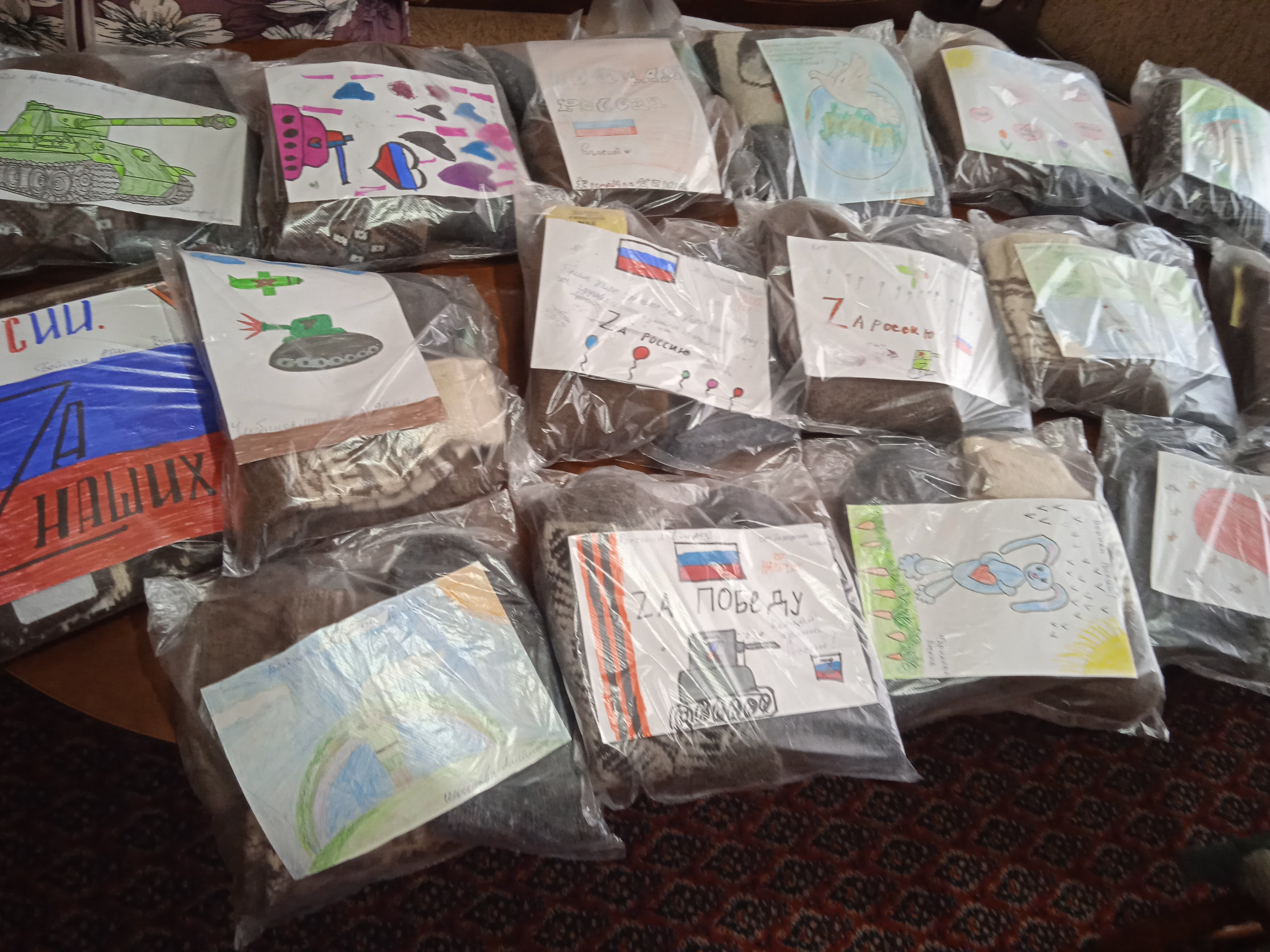 Был организован сбор денежных средств, на которые на Балкарском рынке были закуплены вязаные изделия: носки и тёплые пояса.