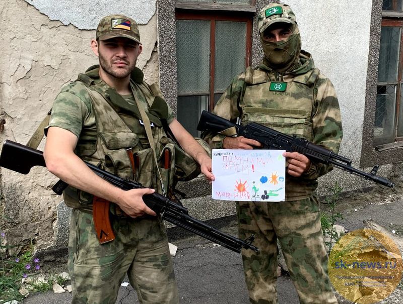 Военнослужащие, участвующие в спецоперации по денацификации Украины, поблагодарили детей армянской общины ставропольской здравницы.