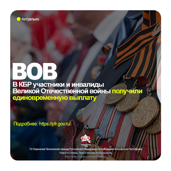 В Кабардино-Балкарской Республике участники и инвалиды Великой Отечественной войны получили единовременную выплату, сообщает пресс-служба Отделения Пенсионного фонда РФ по КБР.