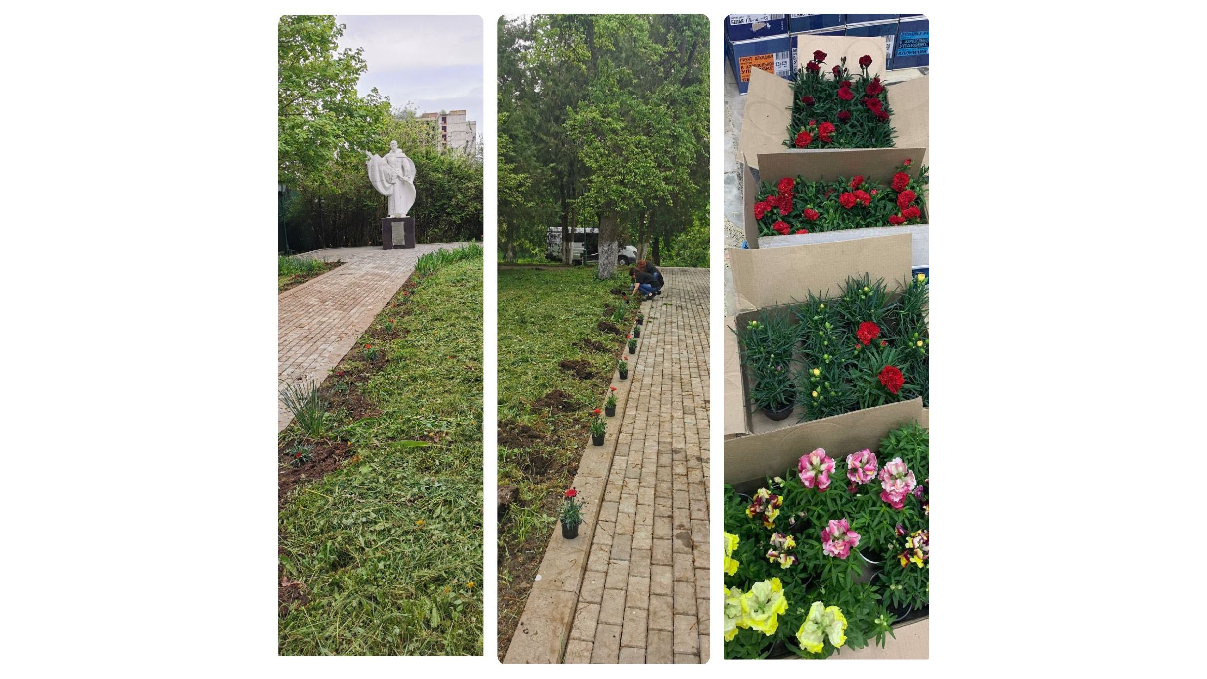 В рамках субботника были посажены многолетние цветы, также была приведена в порядок территория вокруг памятника.