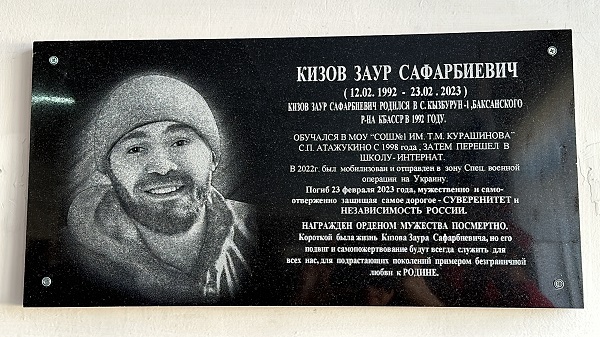 В первой школе села Атажукино открыли мемориальную доску уроженцу села Кизову Зауру Сафарбиевичу, который погиб, выполняя свой воинский долг в зоне СВО.