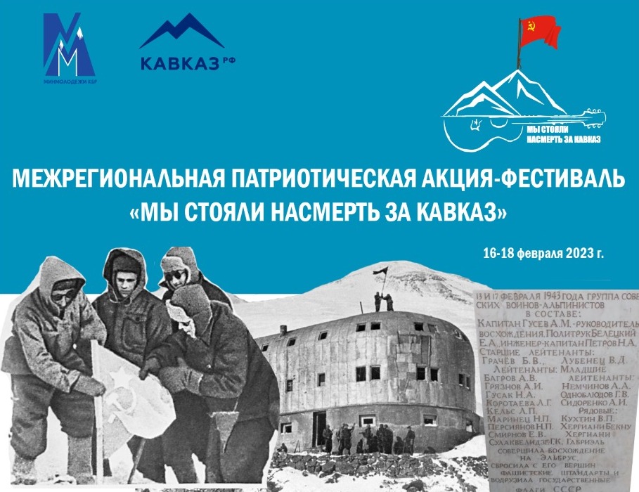 С 16 по 18 февраля 2023 года Министерством по делам молодежи Кабардино-Балкарской Республики планируется проведение в Эльбрусском муниципальном районе Межрегиональной патриотической акции-фестиваля «Мы стояли насмерть за Кавказ», сообщает пресс-служба Минмолодежи КБР.
