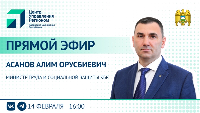 На этой неделе гостем станет министр труда и социальной защиты Алим Асанов. Трансляция прямого эфира состоится 14 февраля в 16:00 на площадке официального сообщества Правительства КБР во «ВКонтакте» и «Телеграм».