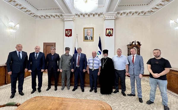 Глава КБР Казбек Коков встретился с представителями общественных организаций и духовенства Кабардино-Балкарии, которые вчера вернулись из поездки в город Скадовск Херсонской области.