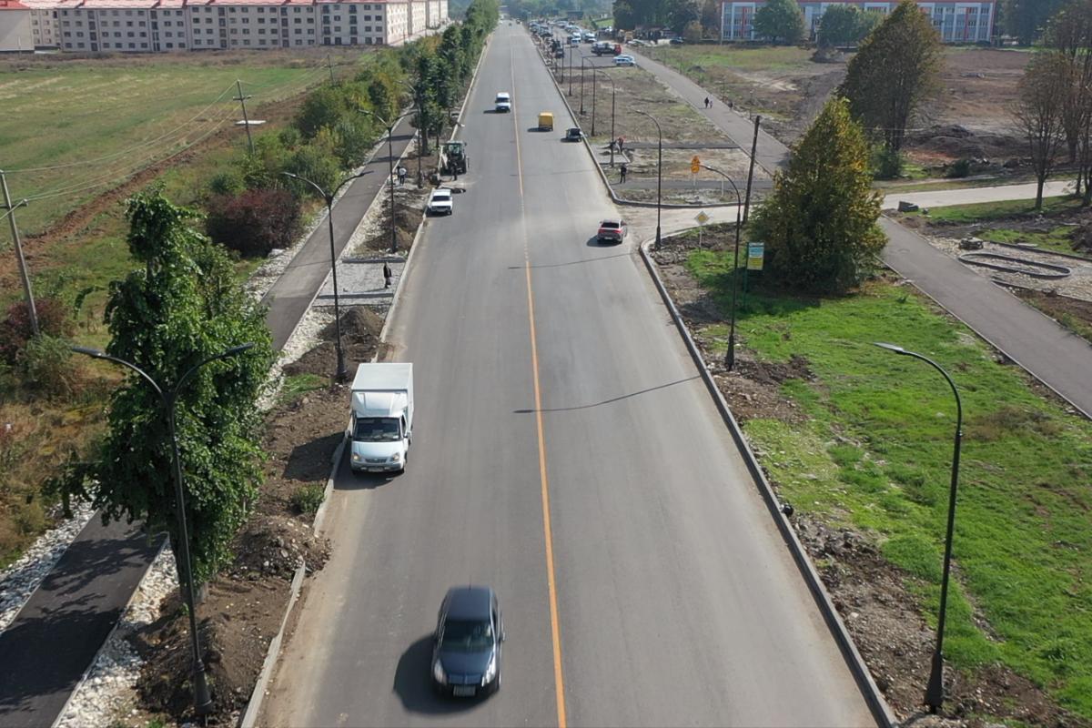 Далее будет уложен верхний слой асфальтобетонного покрытия, оборудованы парковочные места, а также дорогу обустроят необходимыми элементами для обеспечения безопасности.