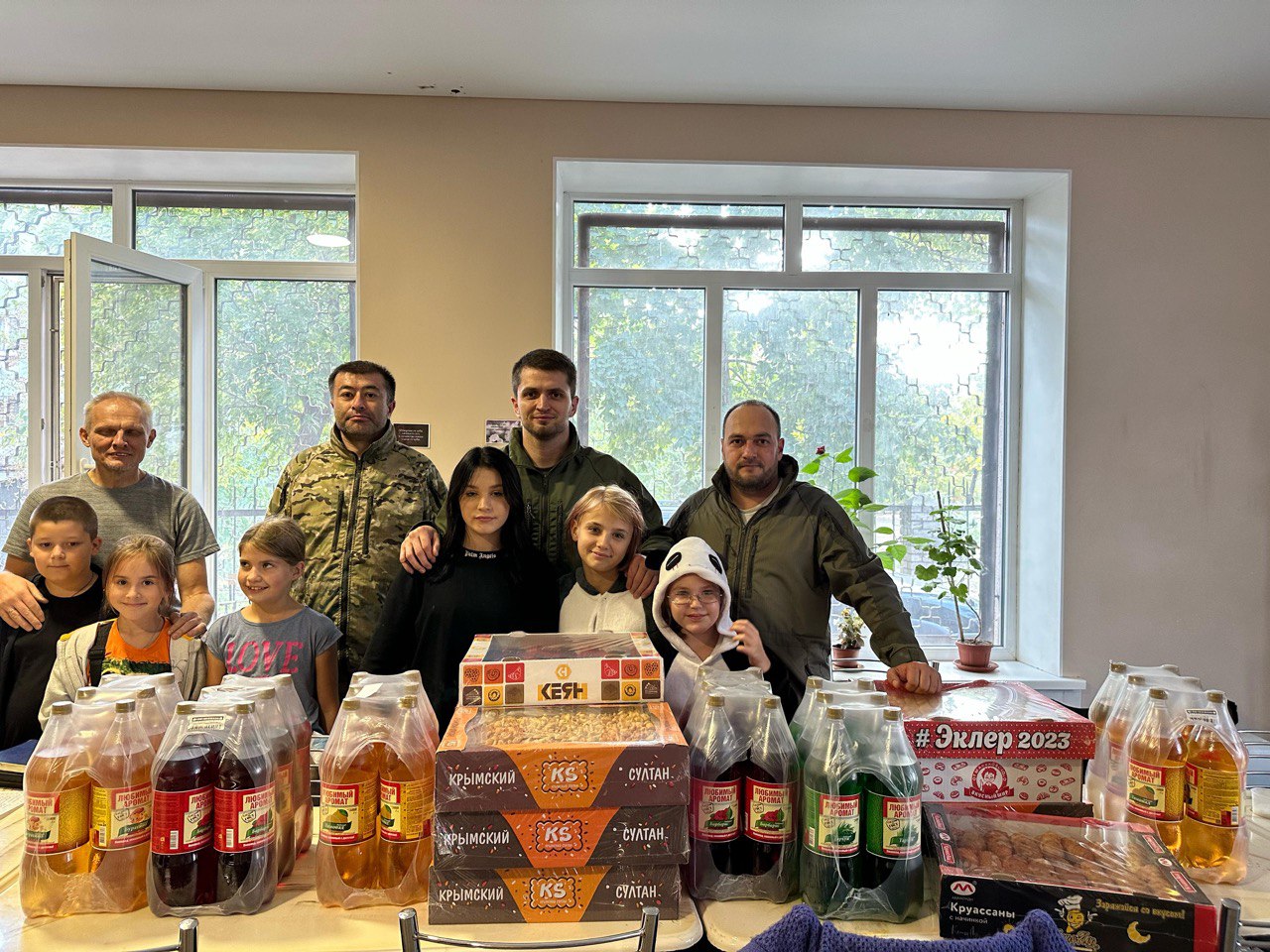 Ответили на интересующие вопросы ребят, также оказали гуманитарную помощь в виде продуктов: 12 коробок разновидностей конфет и печенья и сладкой воды.