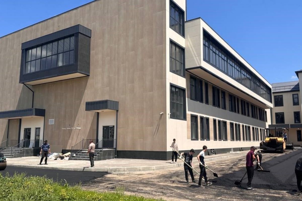 На данный момент завершены все строительные работы внутри здания и расставлена мебель. Идет укладка асфальтобетонного покрытия. В ближайшие сроки будет проведена техническая уборка помещений и в конце месяца планируется сдача объекта. Для удобства жителей республики на входе висит qr-код, отсканировав который каждый желающий может подать заявку на обучение в школе и встать в очередь.