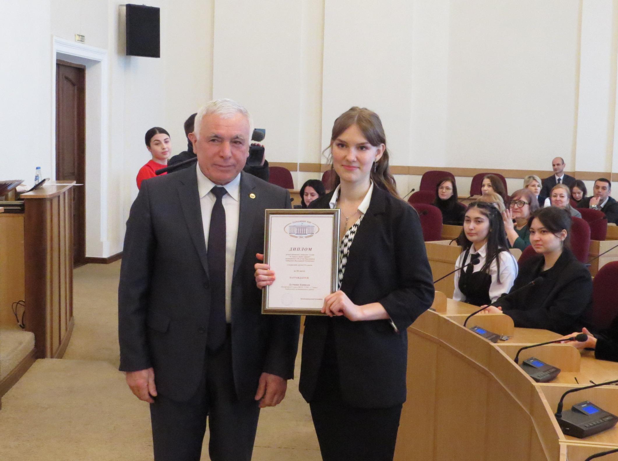 Награды вручались учащимся общеобразовательных учреждений КБР, ставшим победителями конкурсов, посвященных 30-летию Парламента КБР.