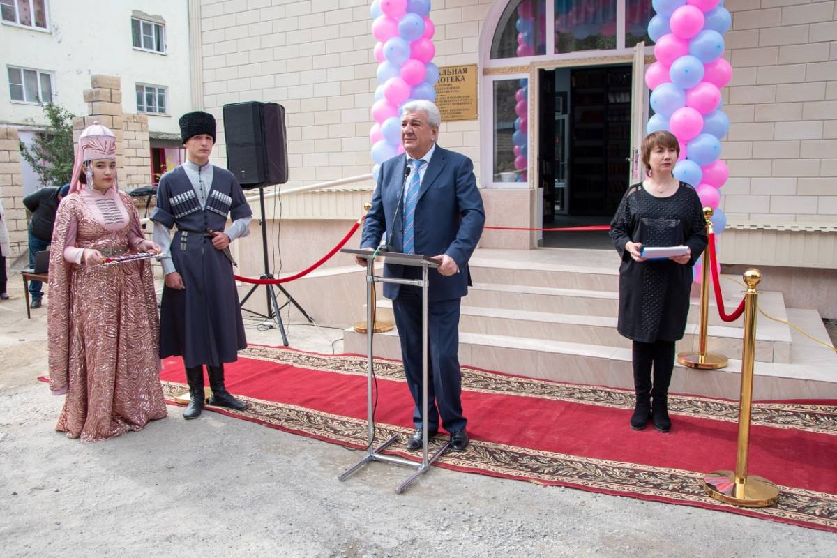 Начался визит с торжественной церемонии открытия Центральной библиотеки им. С.А. Отарова в Тырныаузе. После капитального ремонта библиотека значительно преобразилась: появилось современное интерактивное оборудование, пополнился книжный фонд, обновился зал и служебные помещения.
