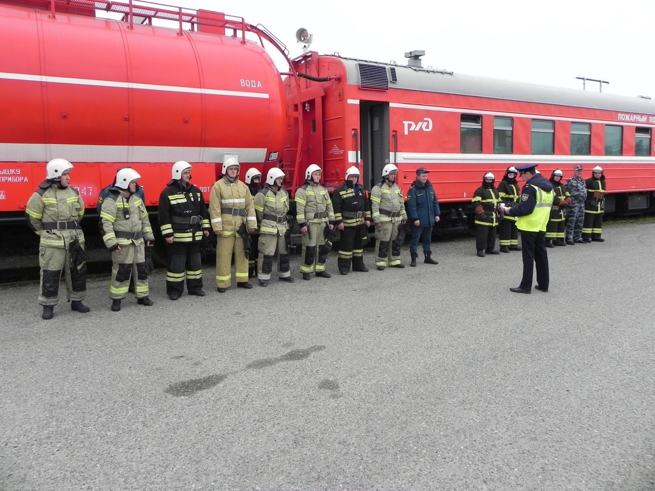 Пожарные совершенствуют навыки тушения пожаров на объектах железнодорожного транспорта