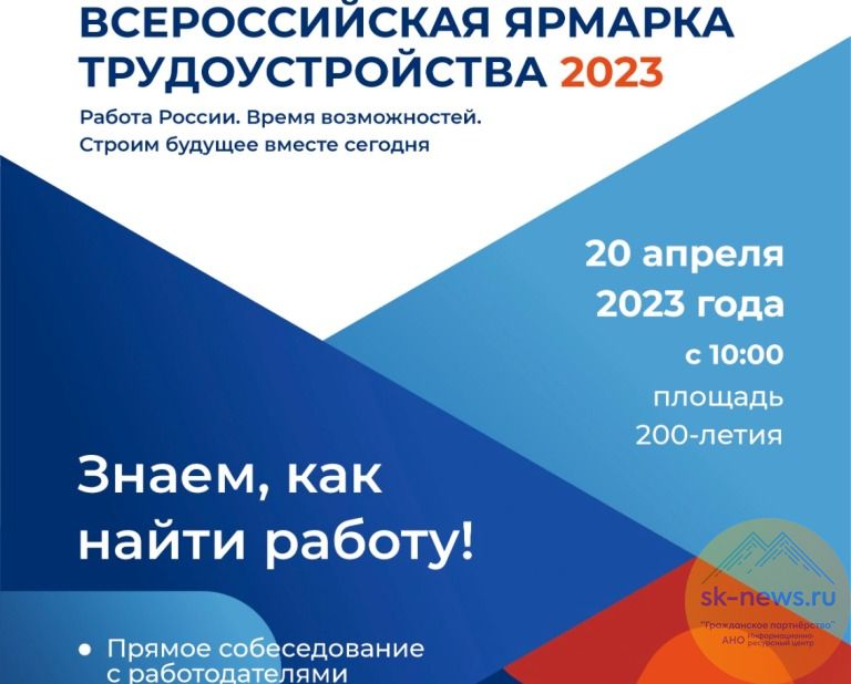 Кадровый центр в четверг 20 апреля 2023 г. проведет региональный этап Всероссийской ярмарки трудоустройства «Работа России. Время возможностей». В ярмарке примут участие 150 работодателей, которые предложат соискателям 8 тысяч вакансий, рассказал SK-NEWS.RU глава Ставрополя Иван Ульянченко.