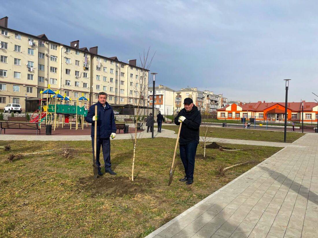 Мэр Нальчика совместно с жителями близлежащих домов посадил деревья в новом сквере в мкр Нарт