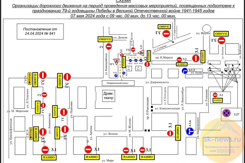Ограничат проезд также с 19 часов до полуночи 2 и 4 мая по улице Дзержинского от Л. Толстого до проспекта Октябрьской Революции, М. Морозова от Ломоносова до Маршала Жукова, Маршала Жукова от Мира до Дзержинского, Советской, Булкина, проспекту Октябрьской Революции, Артема от Мира до Дзержинского, проспекту К. Маркса от Голенева до проспекта Октябрьской Революции, Суворова от Советской до Ставропольской, Р. Люксембург от Дзержинского до проспекта К. Маркса, Кавалерийской от Дачной до Дзержинского, Пушкина от Дзержинского до Мира, Ленина от Л. Толстого до Р. Люксембург.