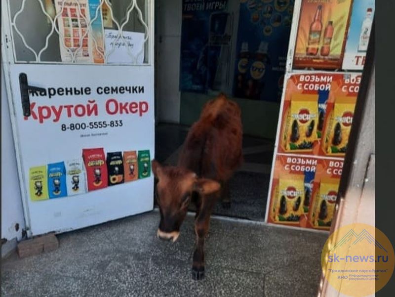 В Кисловодске гуляющего по магазинам теленка отправили на штрафстоянку