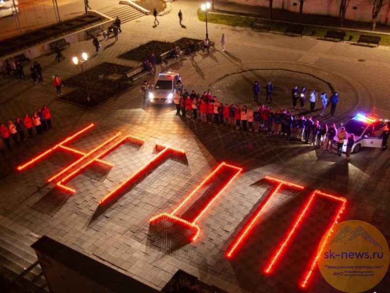 На центральной площади города вечером молодые люди с помощью сотен красных лампад зажгли надпись «Нет ДТП». Накануне, 20 ноября, во всем мире отмечался День памяти жертв ДТП