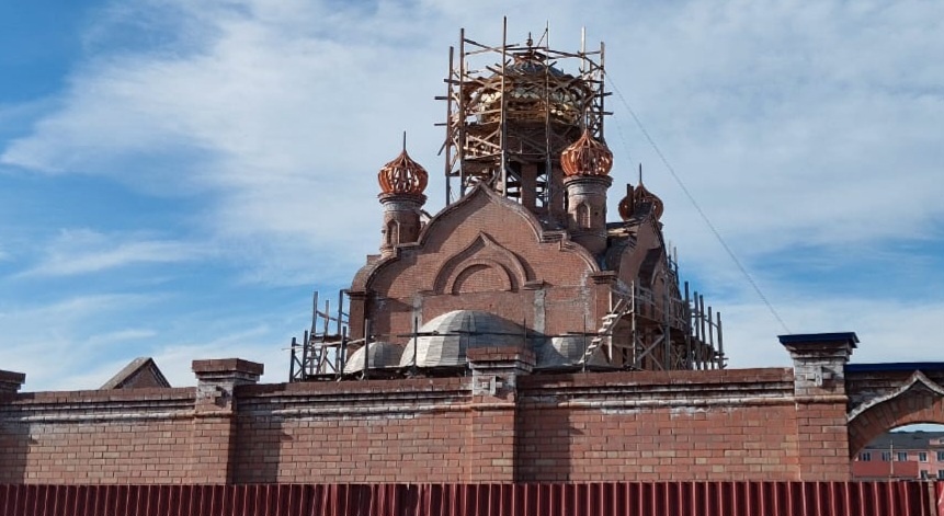 В настоящее время на объекте ведутся работы по строительству подсобных помещений, забора, куполов. Завершено строительство основного здания храма.