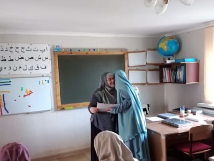Сегодня в воскресной школе с. п. Каменка состоялся экзамен, где ученицы преподавателя Танизы Мисировой показали приобретенные ими навыки по чтению Священного Корана и знанию таджуида.