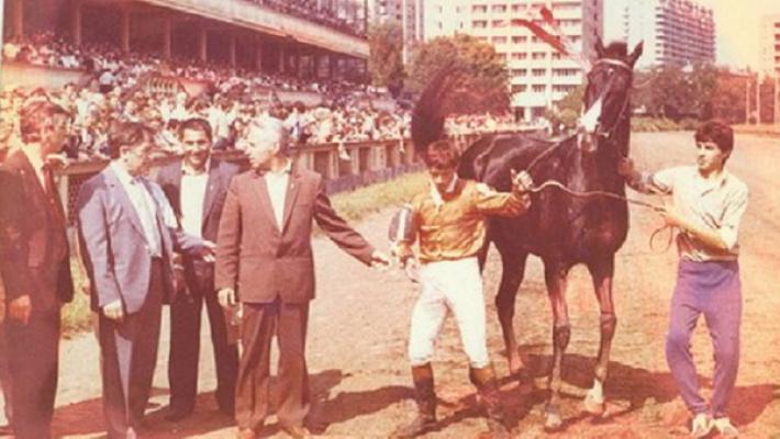 Но вернёмся к Балтимору. Это был вороной жеребёнок, гармонично сложенный, с большой белой отметиной на голове. Его мать – Безенги, дочь отличного производителя, трёхкратного чемпиона СССР Гэй Вэрриора, победительница шести скачек – к тому моменту уже дала двух победителей традиционных призов на ЦМИ: Беломорска и Бумазею от Мурманска. Осенью следующего года Балтимор попадает в тренотделение Арслангирея Шавуева. В двухлетнем возрасте он выступал дважды в рядовых скачках на 1000 и 1400 метров. В первой он был вторым, вторую скачку выиграл. В трёхлетнем возрасте он начал сезон, оставшись вторым в скачке четвёртой группы. И лишь к своему пятому старту на приз имени РСФСР Балтимор подошёл в идеальной форме. Этот почётный трофей оспаривали одиннадцать лучших жеребцов, и скачка началась довольно резво, но на финишной прямой у Балтимора осталось больше сил, чем у соперников. Он финишировал практически в лёгком посыле.