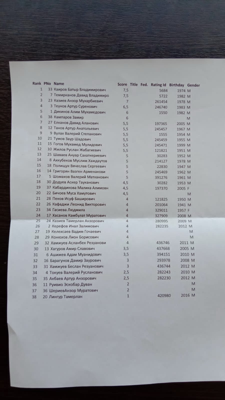 Призерами также стали Давид Темирканов (7,5) – 2-е место и Анзор Казиев (7) – 3-е место. Ветеранские призы достались Валерию Вулаху и Зауру Тумову – у них по 5,5 очков.