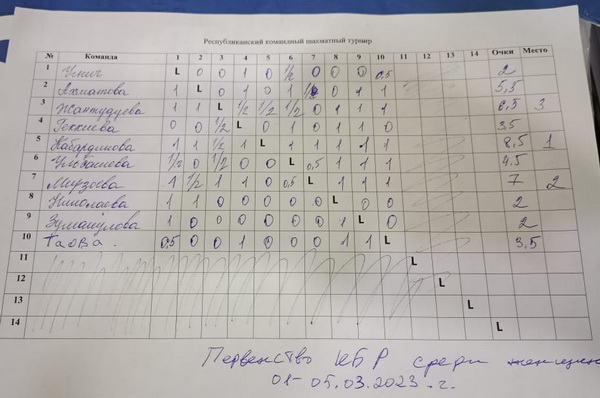 Победительницей чемпионата и, следовательно, чемпионкой КБР 2023 года стала Кабардикова Малика, выпускница лицея «Солнечный город». Ее результат – 8,5 очков из 9. На второе место с 7 очками вышла Мирзоева Лилиана, на третьем месте – Жантудуева Амалия – 6,5 очков.