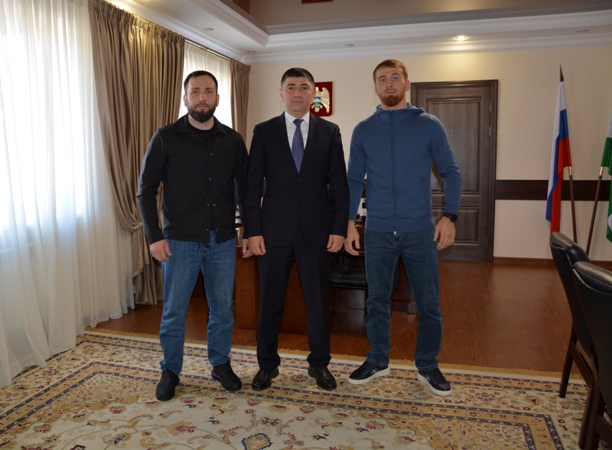 В министерстве спорта Кабардино-Балкарской Республики прошла встреча руководителя спортивного ведомства Ислама Хасанова с Мухамедом Берхамовым, буквально на днях, с досрочной победы дебютировавшим в Bellator.