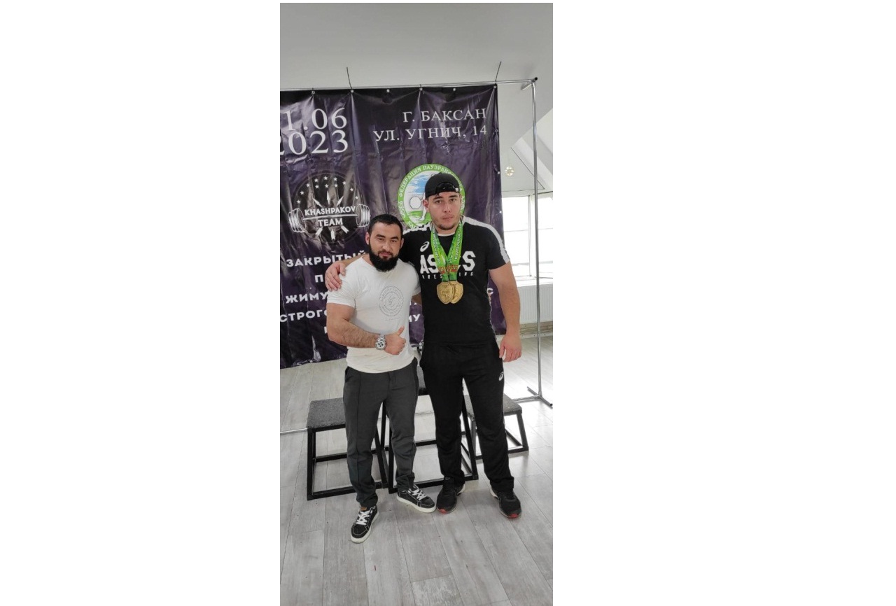 Спортсмен принял участие в закрытом чемпионате КБР по пауэрлифтингу и завоевал две золотые медали в дисциплинах «Жим стоя» и «Строгий подъем штанги на бицепс».