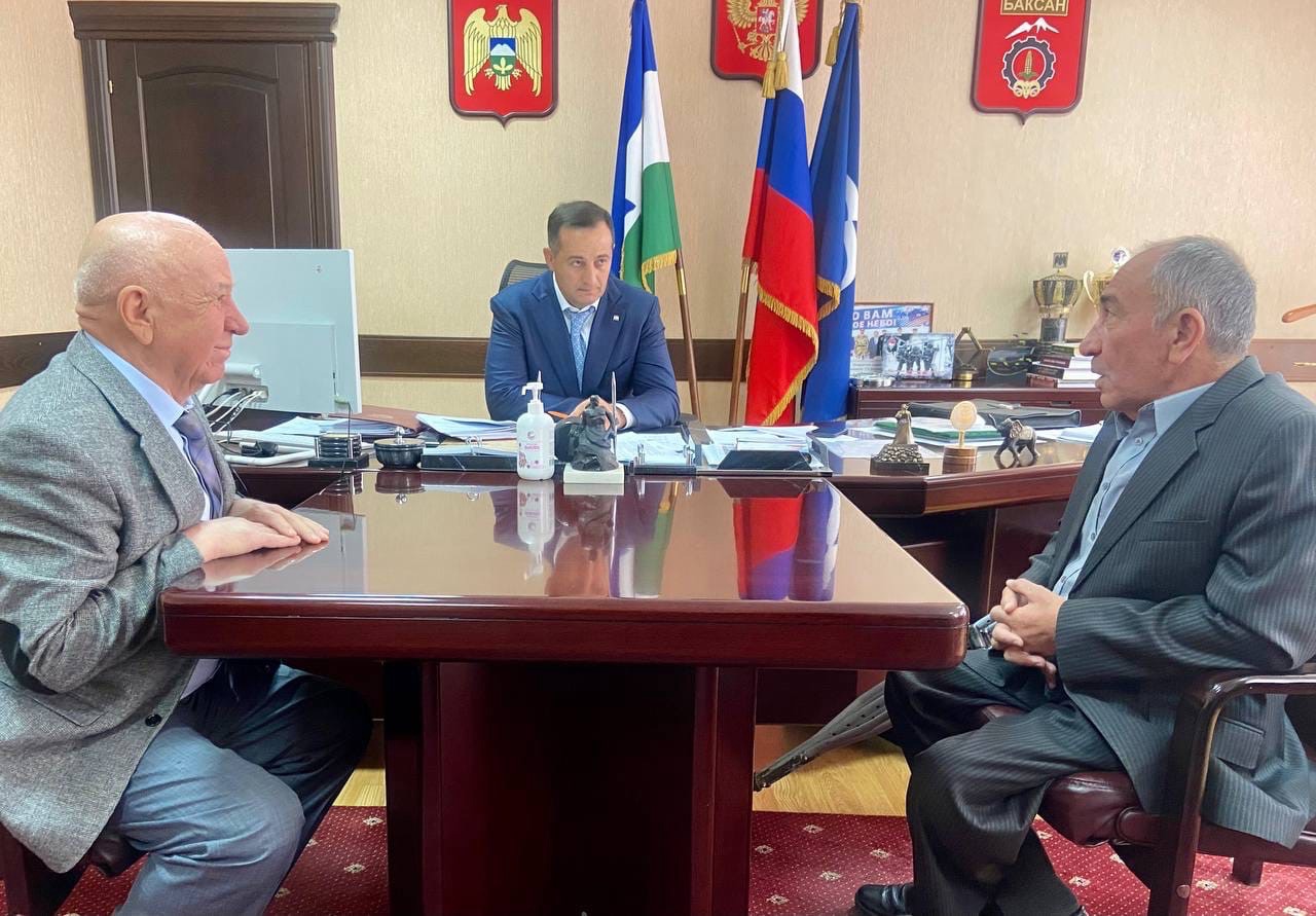 Глава местной администрации городского округа Баксан Хачим Мамхегов провел встречу с бронзовым призёром чемпионата мира по шахматам среди лиц с поражением опорно-двигательного аппарата Чамалом Гедгафовым и председателем
