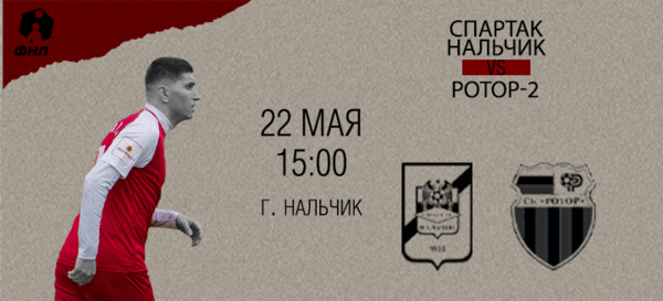 В это воскресенье нальчане сыграют предпоследний домашний матч этого сезона. Соперником «красно-белых» станет фарм клуб волгоградского Ротора. Напомним, что встреча первого круга завершилась крупной победой Спартака, дублем отметился Алан Хачиров, еще один мяч на свой счет записал Идар Шумахов.