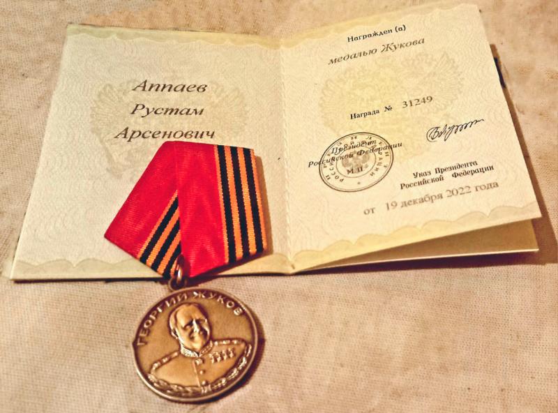 Наш земляк Рустам Арсенович Аппаев, участвующий в специальной военной операции, удостоен высокой государственной награды – медали Жукова сообщил корреспондент РИА «Кабардино-Балкария».