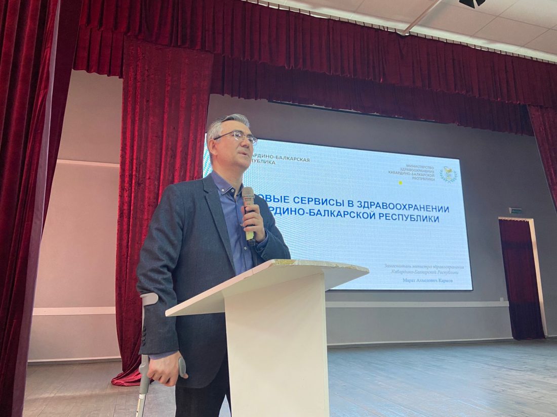 5 апреля 2023 года в Кабардино-Балкарском государственном университете им. Х. М. Бербекова прошла встреча замминистра здравоохранения КБР Марата Кармова со студентами и ординаторами медицинского факультета, института стоматологии и челюстно-лицевой хирургии, а также студентами института искусственного интеллекта и цифровых технологий вуза. В прошлом выпускник физического факультета КБГУ по специальности «Медицинская физика» Марат Кармов ознакомил слушателей с действующими на сегодняшний день цифровыми сервисами в здравоохранении Кабардино-Балкарии.